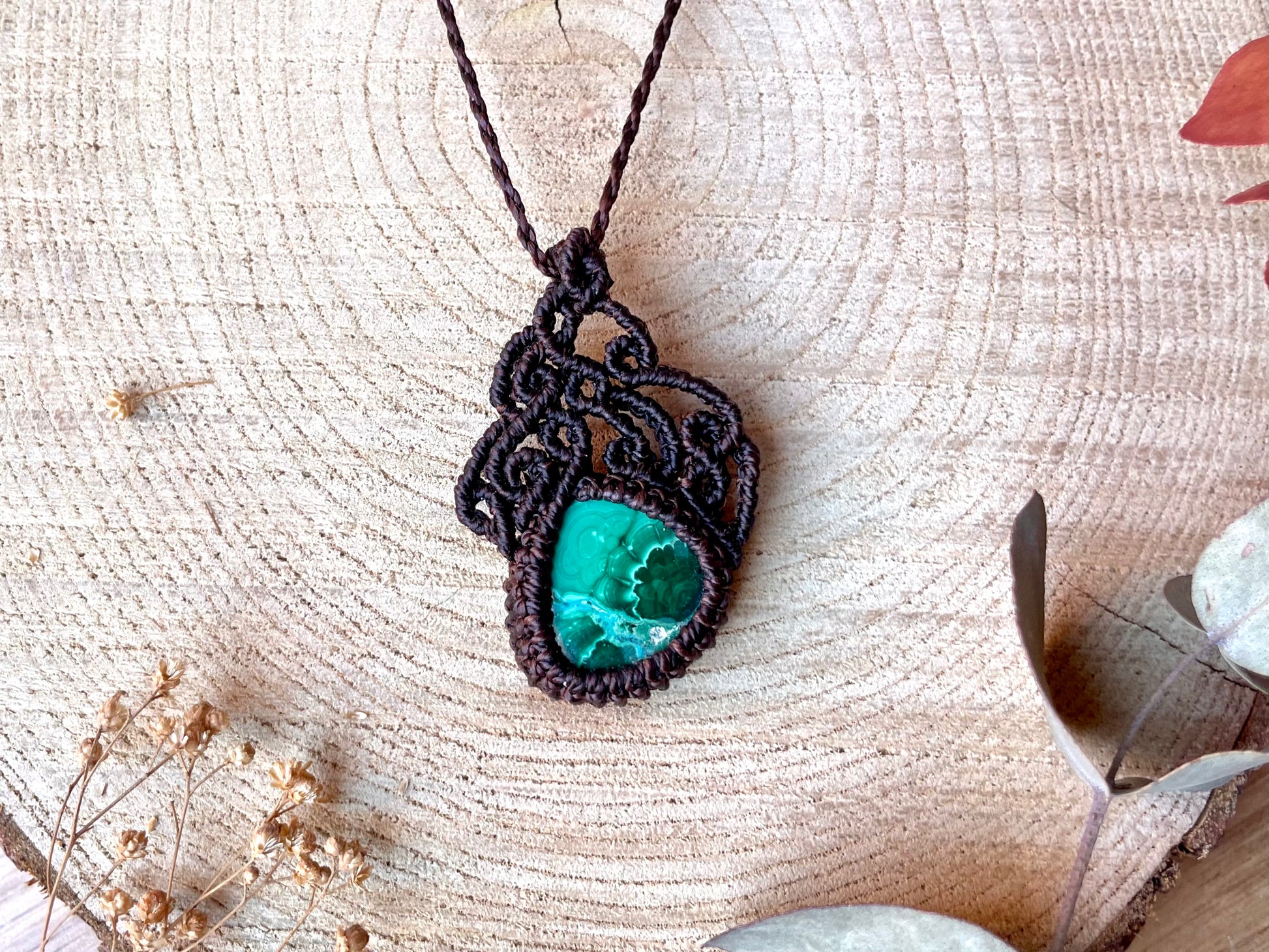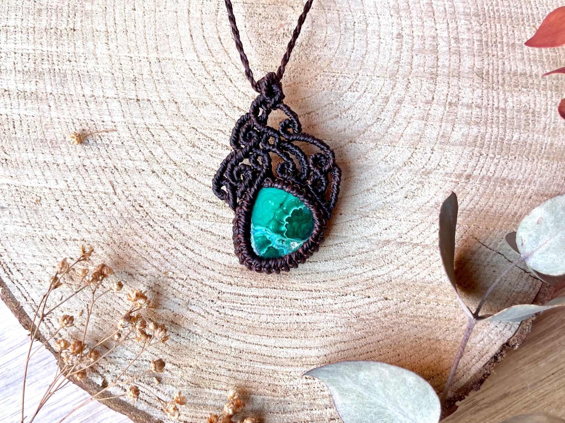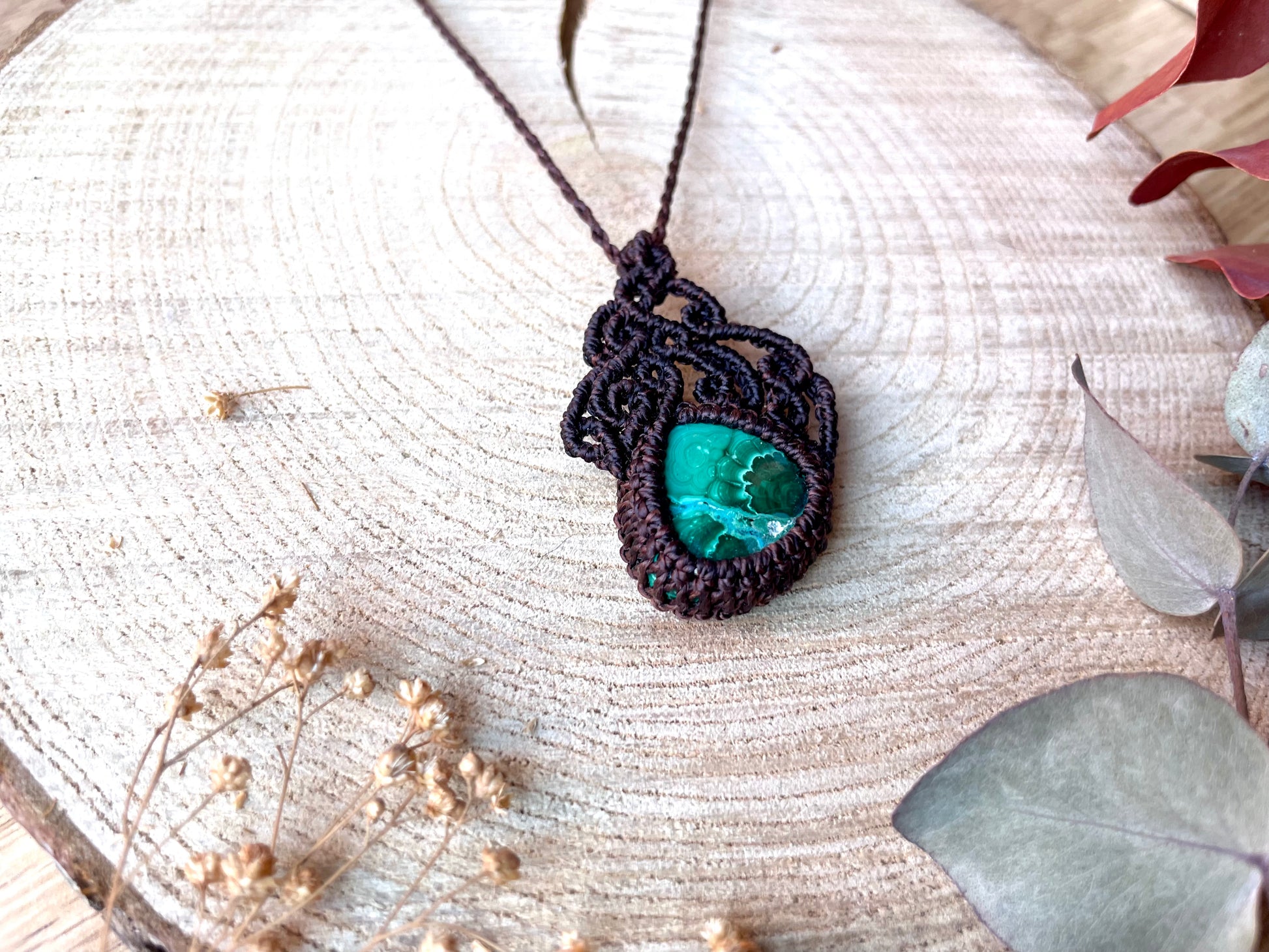 ✦ ¡Has encontrado el único collar asimétrico de toda la tienda! Esta piedra de malaquita llegó a mi ya con un pulido asimétrico y decidí seguir su propio estilo. Está buscando un dueño o una dueña muy concreta, así que si crees que esa eres tú no dudes en hacerte con él. Tiene un cierre ajustable para que puedas llevarla a la altura que más te guste.