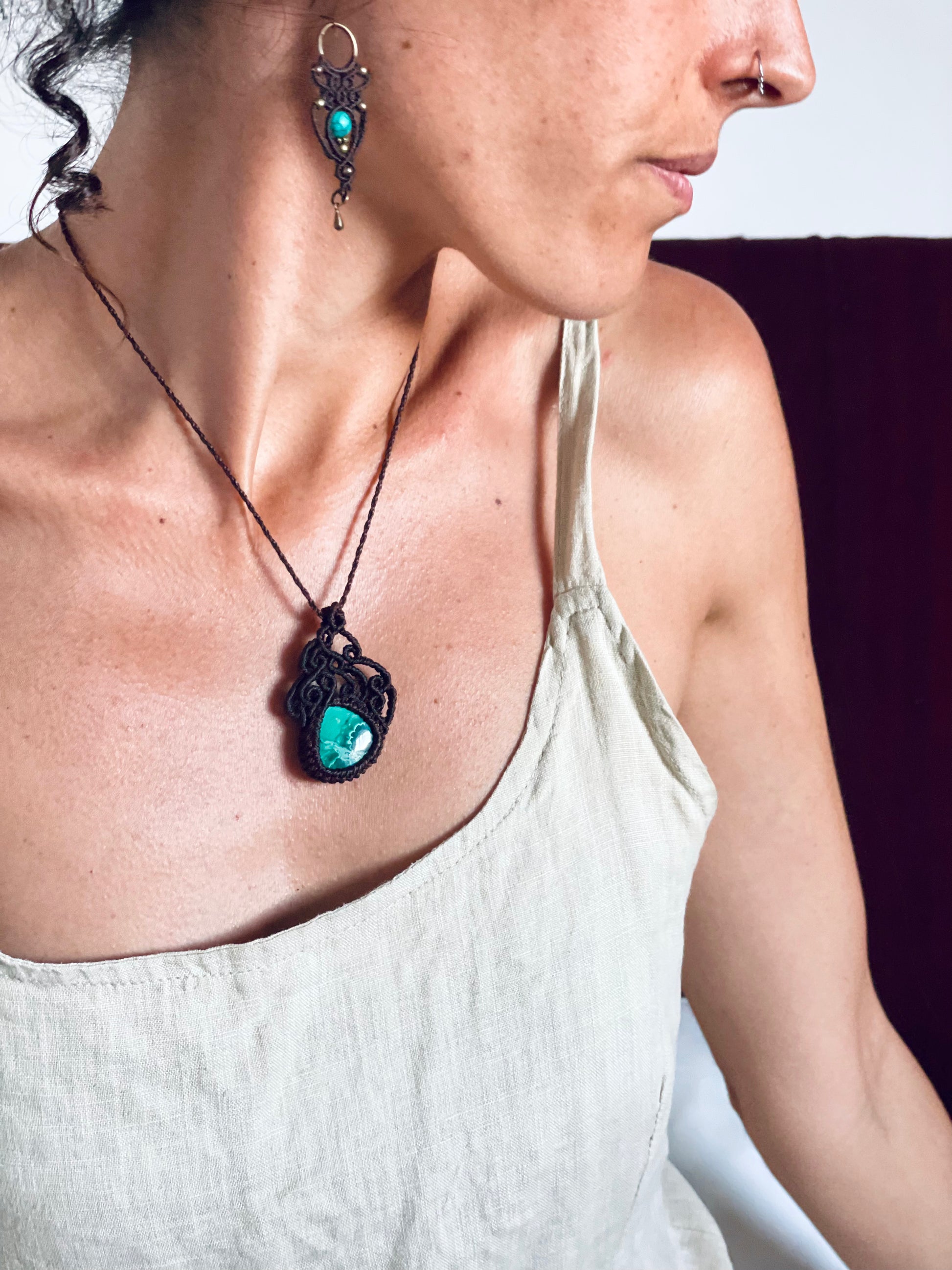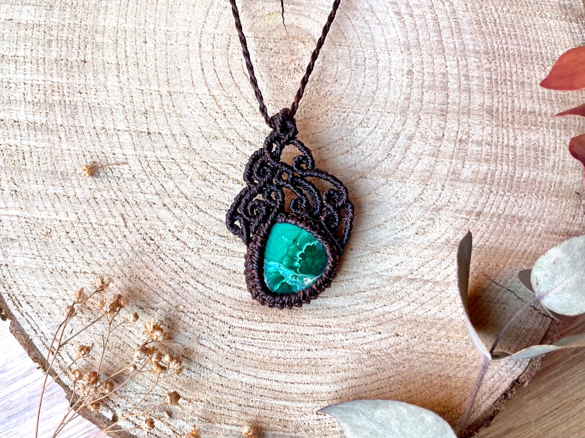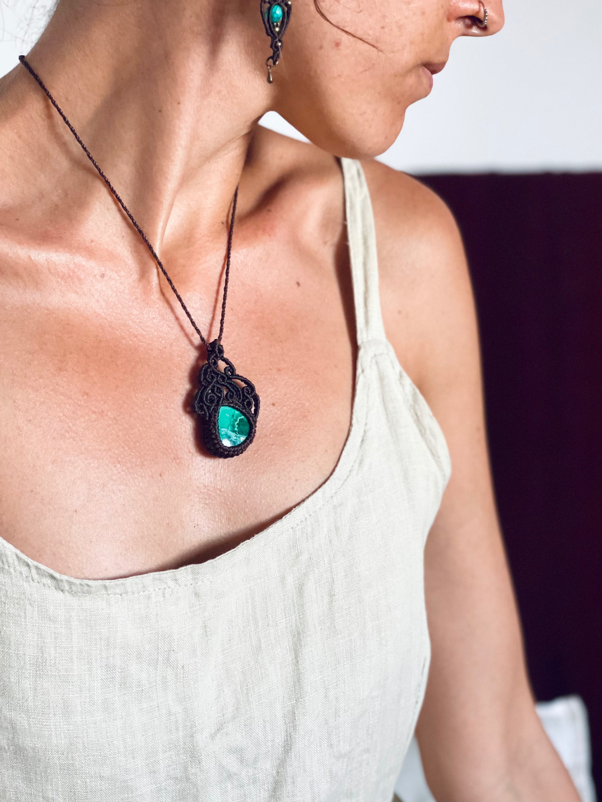 ✦ ¡Has encontrado el único collar asimétrico de toda la tienda! Esta piedra de malaquita llegó a mi ya con un pulido asimétrico y decidí seguir su propio estilo. Está buscando un dueño o una dueña muy concreta, así que si crees que esa eres tú no dudes en hacerte con él. Tiene un cierre ajustable para que puedas llevarla a la altura que más te guste.