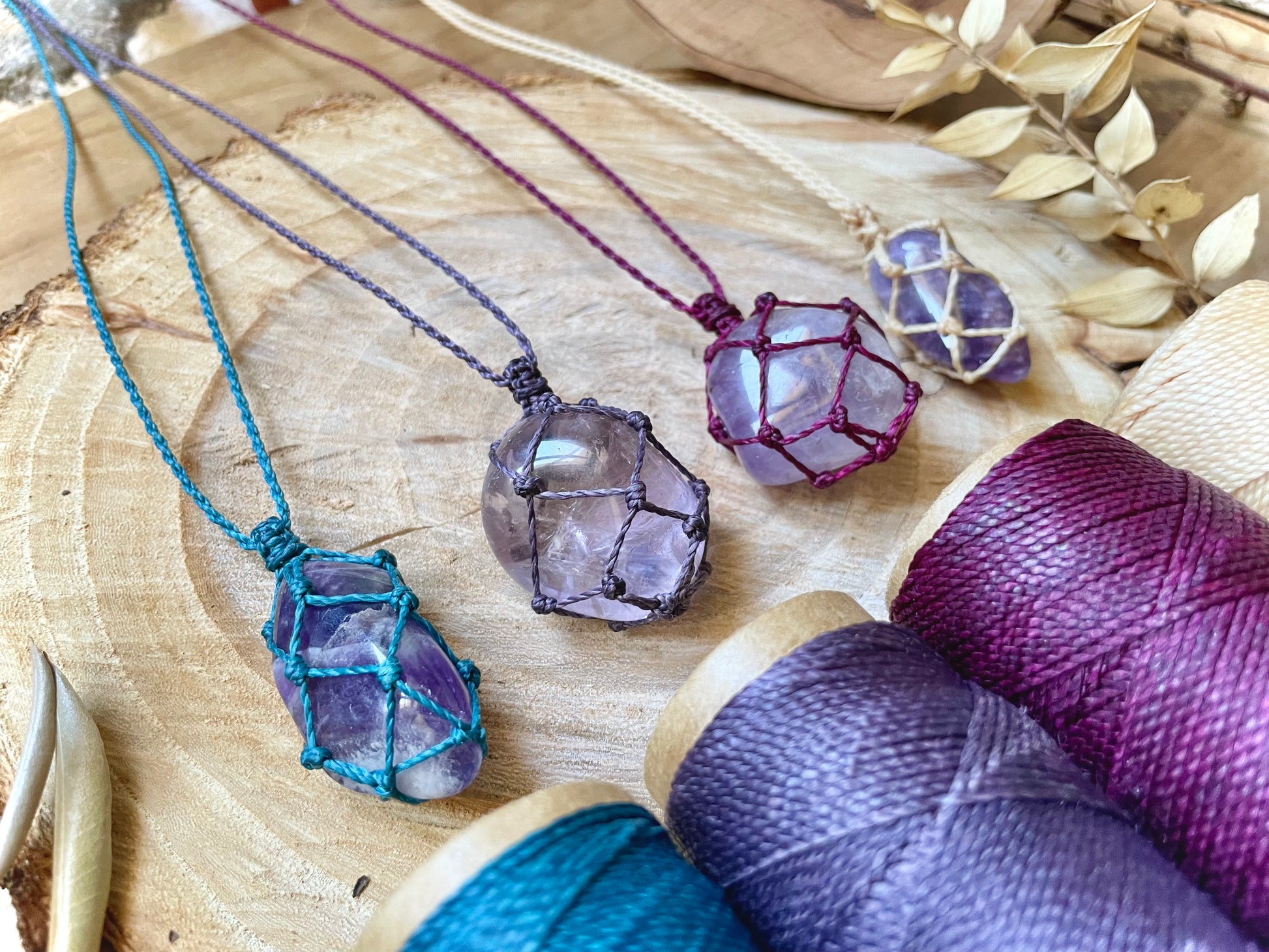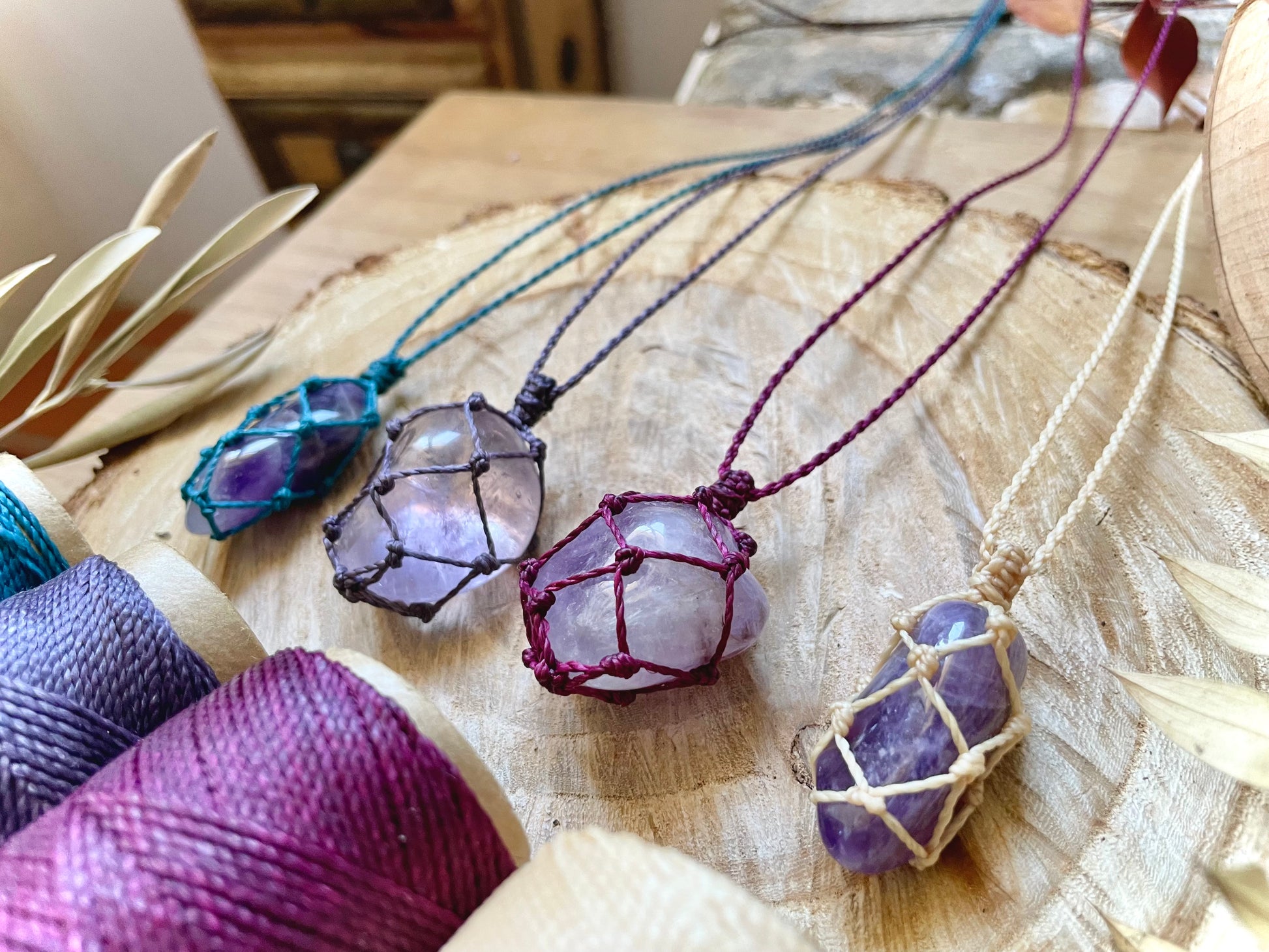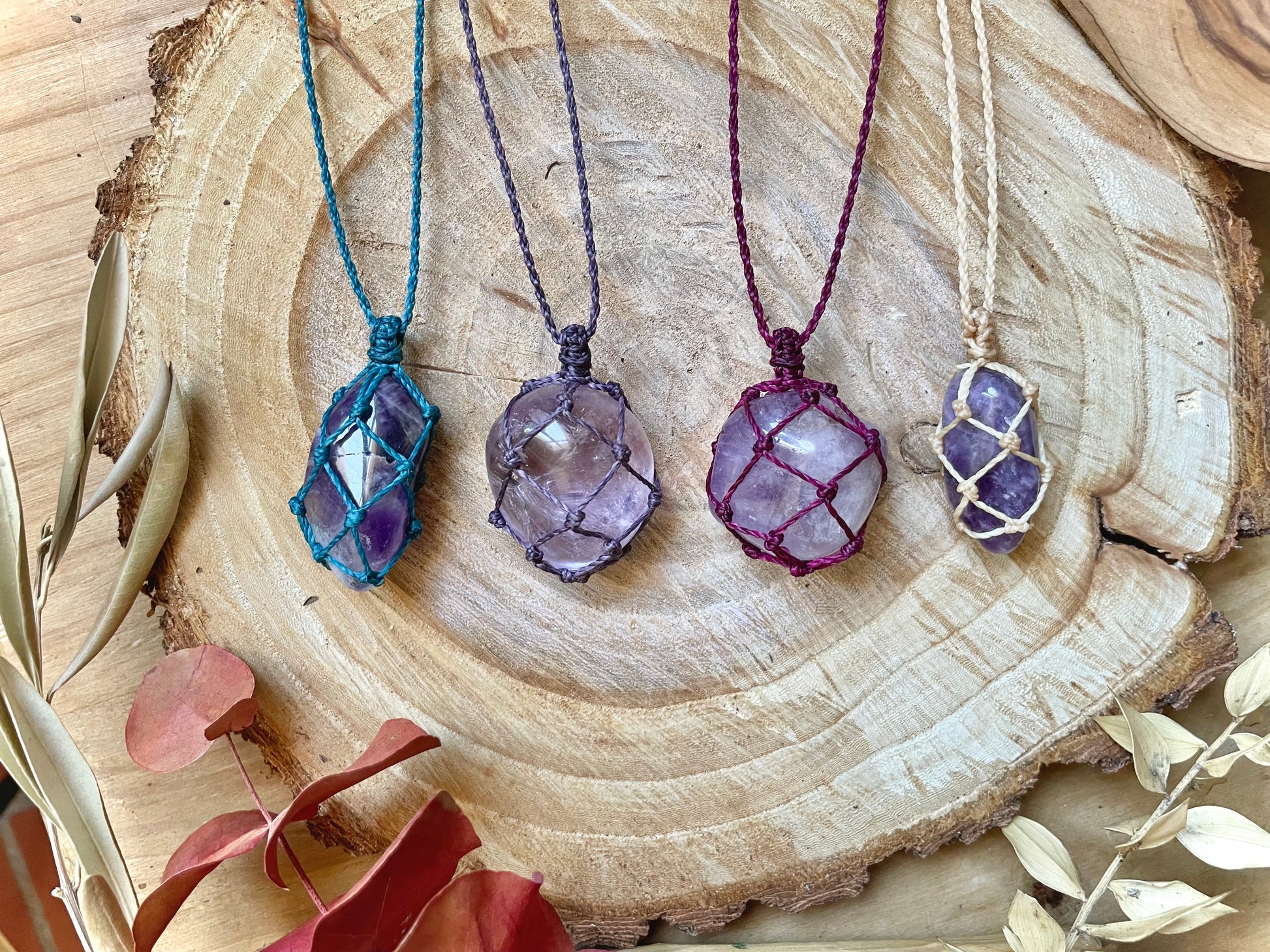 Péndulos de Amatista. Disponible en cuatro colores diferentes.